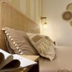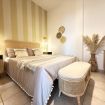 La camera matrimoniale al piano terra è arredata con toni sabbiosi e materiali naturali come bambù, legno e rattan, per un riposo che richiama i colori caldi della spiaggia.