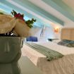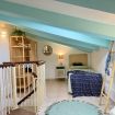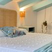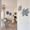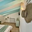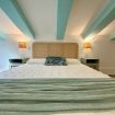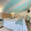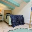 Al piano superiore, una seconda camera da letto con un letto matrimoniale e un letto singolo accoglie grandi e piccoli in un ambiente ispirato ai colori del mare.